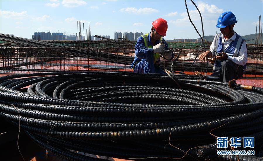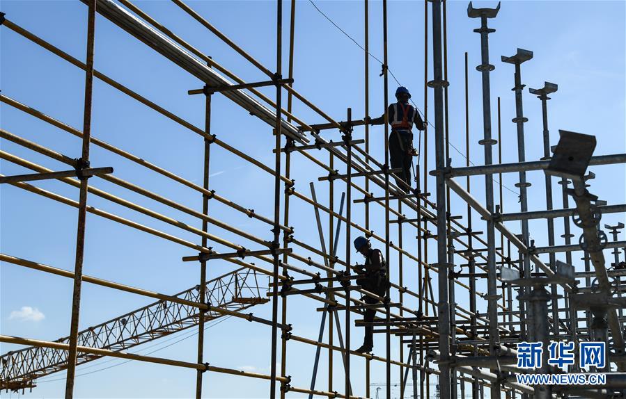 8月3日,工人在長江文創(chuàng)產(chǎn)業(yè)園項目工地施工。進入8月,武漢迎來持續(xù)高溫天氣。在湖北廣電傳媒基地工程的工地上,中建三局總承包公司1500多名工人持續(xù)奮戰(zhàn),力保工程進度。該工程是我國中部地區(qū)首個國家級廣播影視媒體基地,由湖北廣電傳媒大廈項目、長江文創(chuàng)產(chǎn)業(yè)園項目、廣電生活配套項目三大板塊組成,總建設(shè)規(guī)模130萬平方米。自今年3月25日獲批正式復(fù)工以來,承建方克服困難,把因疫情影響耽誤的工期趕了回來,預(yù)計將按原計劃完成建設(shè)任務(wù)。新華社記者程敏攝
