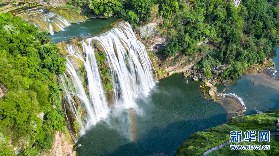 這是位于貴州省安順市的黃果樹大瀑布(5月16日攝,無(wú)人機(jī)照片)。新華社記者陶亮攝