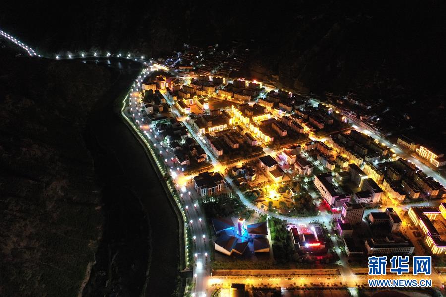 這是7月15日拍攝的舟曲縣新縣城夜景(無人機照片)。新華社記者杜哲宇攝