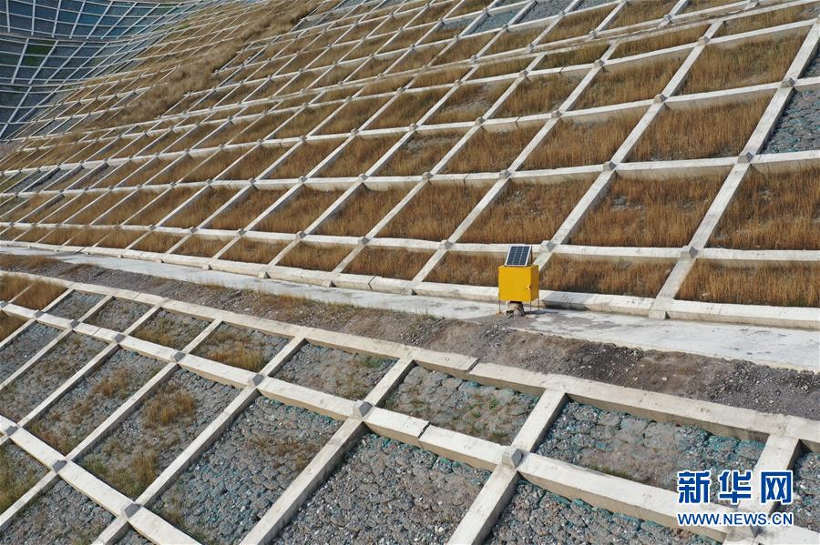 這是7月15日在舟曲縣南峪鄉(xiāng)江頂崖山體滑坡治理點拍攝的一處技術監(jiān)測設備(無人機照片)。新華社記者杜哲宇攝