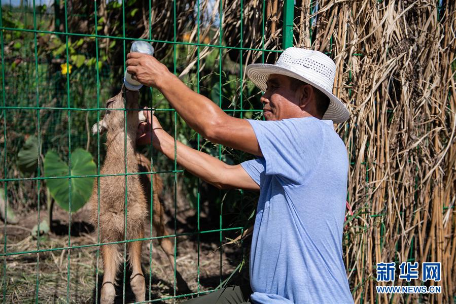 8月7日,在東洞庭湖麋鹿和鳥類救治避難中心,飼養(yǎng)員李衛(wèi)東給被救助的麋鹿喂奶。位于湖南省岳陽(yáng)市的東洞庭湖麋鹿和鳥類救治避難中心成立于2016年9月,占地400余畝,中心自建成后就承擔(dān)起東洞庭湖區(qū)域全部麋鹿的救援、醫(yī)治、康復(fù)和喂養(yǎng)任務(wù)。目前該中心共有14只麋鹿正在接受救助。新華社記者陳思汗攝