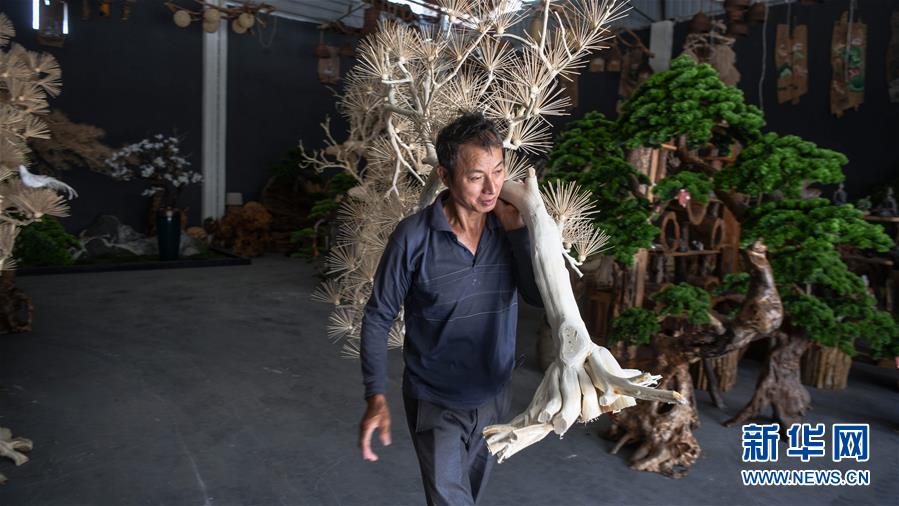 8月7日,一名工人在永??h永安鄉(xiāng)根雕工藝品就業(yè)扶貧車間搬運根雕半成品。2017年以來,廣西桂林市永福縣永安鄉(xiāng)通過幫扶返鄉(xiāng)青年創(chuàng)業(yè)的方式,建立起根雕工藝品就業(yè)扶貧車間,組織貧困群眾進車間務(wù)工學(xué)藝,把當(dāng)?shù)刎S富的朽木和柑橘樹根枝資源利用起來,加工成盆景、茶桌、吊燈等根雕工藝品,不僅幫助貧困群眾在家門口掌握一技之長,還讓他們在脫貧摘帽后實現(xiàn)穩(wěn)定增收。新華社記者張愛林攝