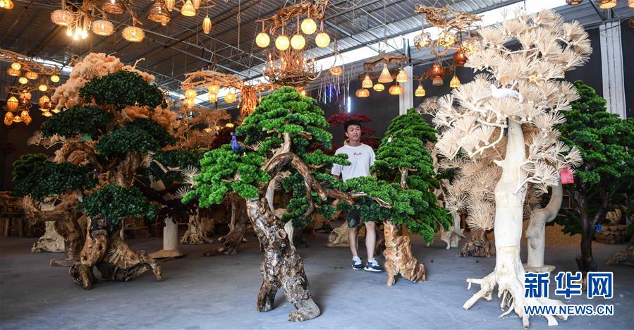 這是8月7日在永??h永安鄉(xiāng)根雕工藝品就業(yè)扶貧車間拍攝的根雕工藝品。2017年以來,廣西桂林市永??h永安鄉(xiāng)通過幫扶返鄉(xiāng)青年創(chuàng)業(yè)的方式,建立起根雕工藝品就業(yè)扶貧車間,組織貧困群眾進(jìn)車間務(wù)工學(xué)藝,把當(dāng)?shù)刎S富的朽木和柑橘樹根枝資源利用起來,加工成盆景、茶桌、吊燈等根雕工藝品,不僅幫助貧困群眾在家門口掌握一技之長(zhǎng),還讓他們?cè)诿撠氄焙髮?shí)現(xiàn)穩(wěn)定增收。新華社記者張愛林?jǐn)z