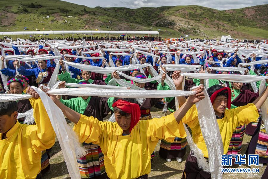 8月7日,在西藏首屆弦子舞展演現(xiàn)場,演出人員在表演弦子舞。當(dāng)日,西藏首屆弦子舞展演在昌都市芒康縣舉行。眾多演員同臺(tái)獻(xiàn)藝,表演國家級非物質(zhì)文化遺產(chǎn)弦子舞,吸引西藏各地的群眾前來觀看。新華社記者孫非攝