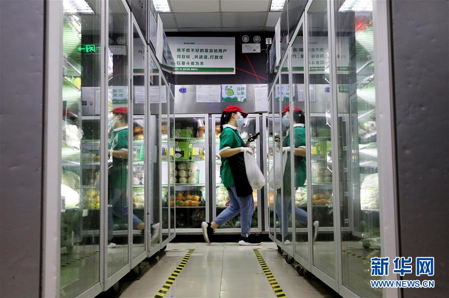 工作人員在叮咚買菜一家前置倉內(nèi)為網(wǎng)絡(luò)訂單配貨(7月17日攝)。近年來,在上海崛起了一批以盒馬、叮咚、拼多多為代表的在線經(jīng)濟(jì)新力量,在助力脫貧攻堅(jiān)、提升城市居民品質(zhì)生活方面發(fā)揮著重要作用。電商加持下的“云農(nóng)業(yè)”加速發(fā)展,一端為市民提供更便宜新鮮的農(nóng)產(chǎn)品,另一端讓山區(qū)的優(yōu)質(zhì)產(chǎn)品加速進(jìn)入城市餐桌,化解交通不便、農(nóng)產(chǎn)品滯銷等問題。新華社記者方喆攝。