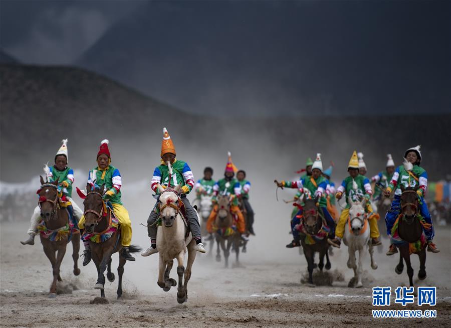 8月10日,騎手馳騁在當(dāng)雄縣賽馬場(chǎng)。新華社記者普布扎西攝。