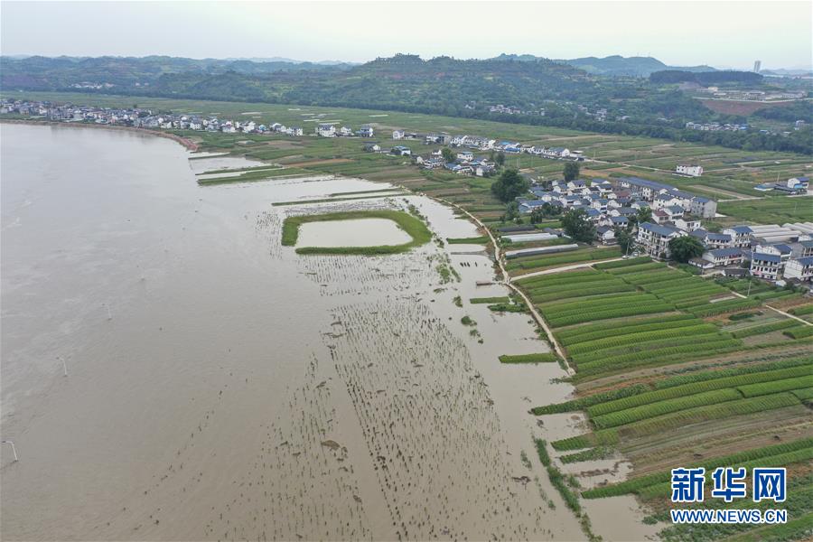 8月12日,重慶市潼南區(qū)桂林街道雙壩村蔬菜基地,部分低洼地帶的農(nóng)作物被洪水淹沒(無人機照片)。受強降雨影響,涪江潼南段迎來過境洪水。新華社記者 黃偉 攝