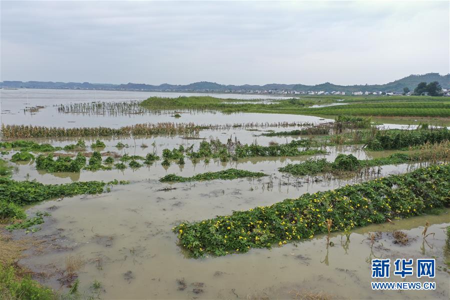 8月12日,重慶市潼南區(qū)桂林街道雙壩村蔬菜基地,部分低洼地帶的農(nóng)作物被洪水淹沒(無人機(jī)照片)。受強(qiáng)降雨影響,涪江潼南段迎來過境洪水。新華社記者 黃偉 攝