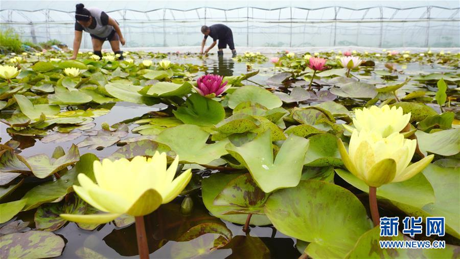 8月12日,河北省灤州市茨榆坨鎮(zhèn)草塘坨村花農(nóng)在大棚內(nèi)打理種植的蓮花。近年來,河北省灤州市茨榆坨鎮(zhèn)結(jié)合市場需求,引導(dǎo)農(nóng)民發(fā)展玫瑰、蓮花等花卉規(guī)模化種植,通過“線上”和“線下”相結(jié)合的銷售模式,進入北京、天津等地花卉市場,在扮靚城鄉(xiāng)的同時為種植戶帶來良好收益。新華社記者 牟宇 攝