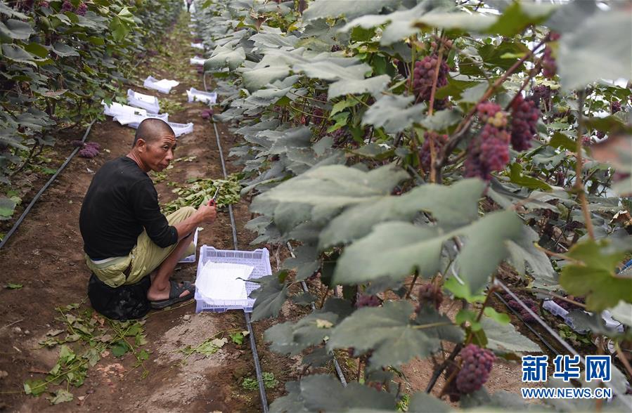 8月13日,在吉林省磐石市煙筒山鎮(zhèn)民主村,村民在葡萄大棚內(nèi)采摘葡萄。時(shí)下,吉林省磐石市煙筒山鎮(zhèn)棚膜葡萄園區(qū)內(nèi)的大棚葡萄進(jìn)入采摘季,農(nóng)民喜獲豐收。近年來(lái),當(dāng)?shù)赝ㄟ^(guò)“共創(chuàng)”與“扶持”相結(jié)合的模式大力發(fā)展特色農(nóng)業(yè),建設(shè)葡萄種植大棚300余棟,以此帶動(dòng)村集體經(jīng)濟(jì)發(fā)展,助力農(nóng)民增收致富。新華社記者許暢攝