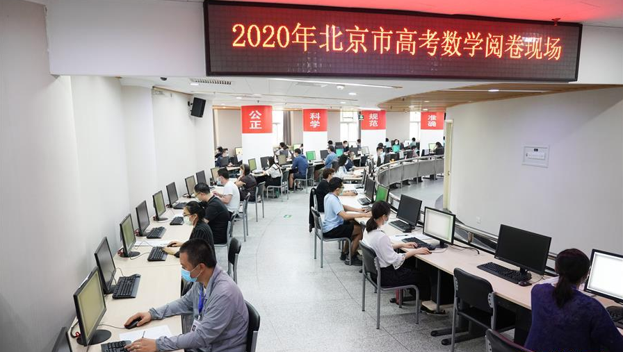 7月16日,評卷老師在位于清華大學的高考數學閱卷現(xiàn)場用計算機系統(tǒng)閱卷。