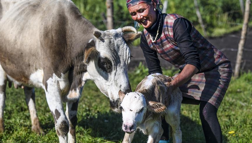 時(shí)值盛夏,新疆西天山水草豐美,夏牧場(chǎng)上牛羊成群。和煦的陽光普照草場(chǎng),也照進(jìn)牧民心中。