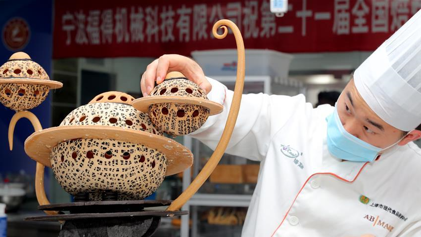當(dāng)日,第二十一屆全國焙烤職業(yè)技能競賽上海賽區(qū)選拔賽,在上海市現(xiàn)代食品職業(yè)技能培訓(xùn)中心舉行,來自上海、江蘇、浙江等地的近60名焙烤行業(yè)技師,在藝術(shù)面包、傳統(tǒng)糕點(diǎn)、糖藝和藝術(shù)巧克力等項(xiàng)目中進(jìn)行比拼,在充滿焙烤香氣的賽場上展現(xiàn)技藝。