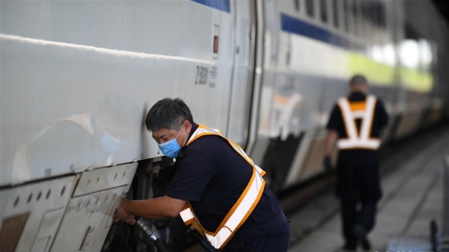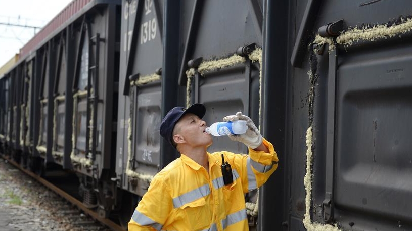 在中國鐵路上海局集團(tuán)有限公司杭州北車輛段合肥運(yùn)用車間,386名列車檢修工人頭頂烈日堅(jiān)守崗位,確保暑運(yùn)列車的安全運(yùn)行。