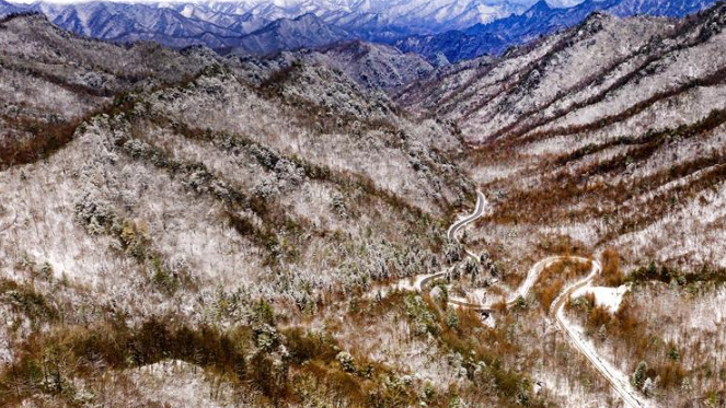 當(dāng)日,秦嶺初雪,色彩斑斕的秋色在白雪映襯下,美如畫(huà)卷,置身其間,恍若進(jìn)入童話(huà)世界