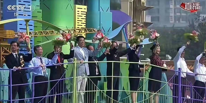 第七屆全國(guó)道德模范、深企中建鋼構(gòu)華南大區(qū)總工程師陸建新受邀乘坐“春潮滾滾”彩車,經(jīng)過天安門廣場(chǎng)。