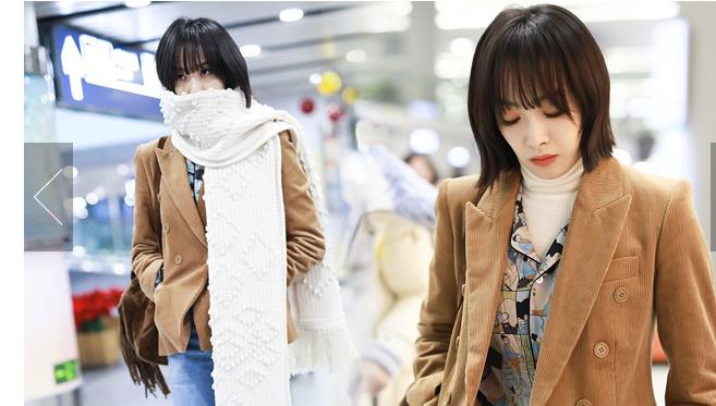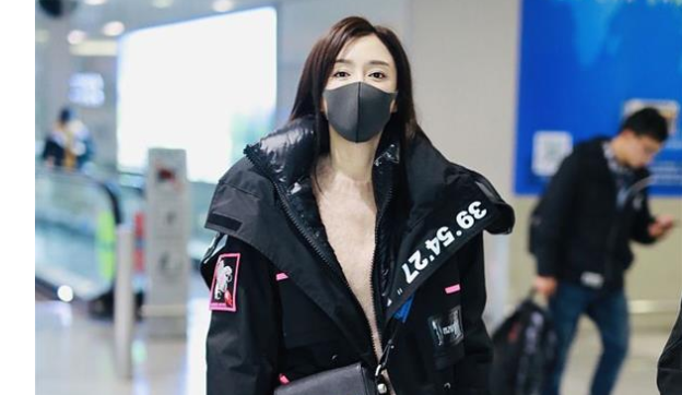 秦嵐潮味棉服亮相機(jī)場(chǎng) 口罩遮面露甜笑