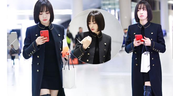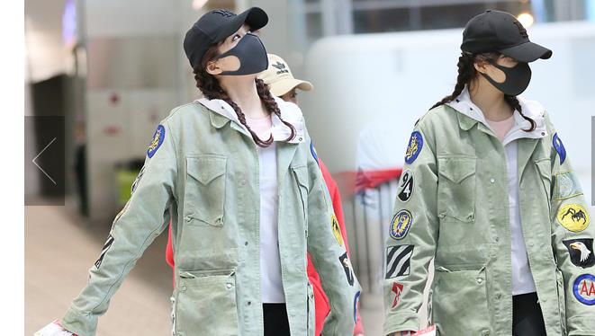 2018年12月3日,上海,秦嵐亮相機(jī)場(chǎng)。潮味棉服亮相機(jī)場(chǎng)變酷女孩,口罩遮面露甜笑心情靚。