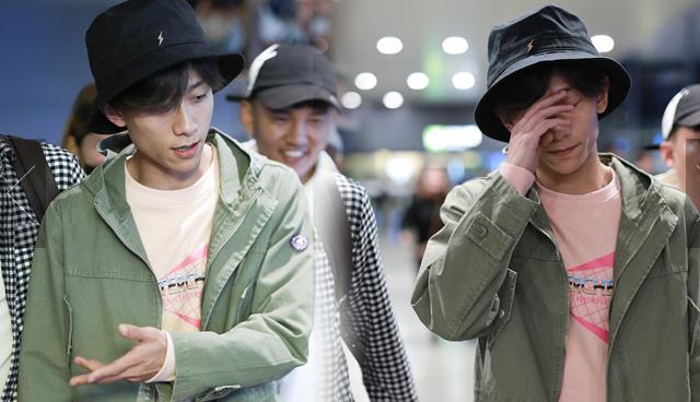 2018年10月14日,上海,張一山抵達(dá)上海機(jī)場(chǎng)。張一山戴漁夫帽眼袋嚴(yán)重瞬間老十歲, 用手擋臉?biāo)撇辉干乡R。