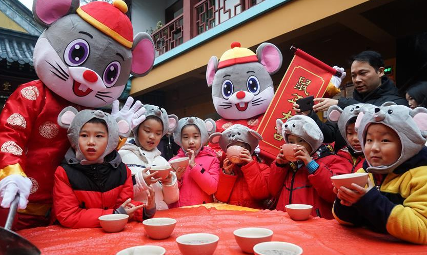 1月2日,小朋友在南京玄奘寺的贈粥送祝福活動現(xiàn)場喝臘八粥。 當日是農(nóng)歷臘月初八,中國傳統(tǒng)臘八節(jié)。