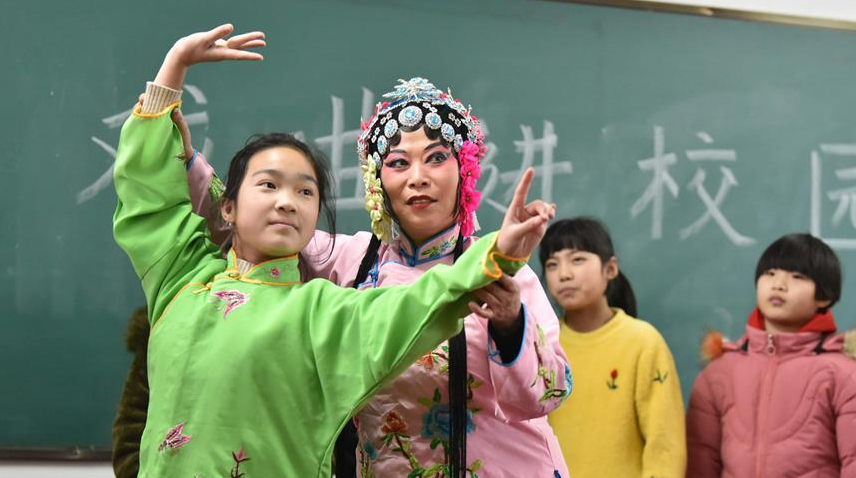 近年來,河北省定州市明月店鎮(zhèn)吳咬村小學積極開展“傳統(tǒng)戲曲進校園”特色社團活動,以戲曲展演、戲曲交流互動等形式,讓學生感受戲曲的魅力。