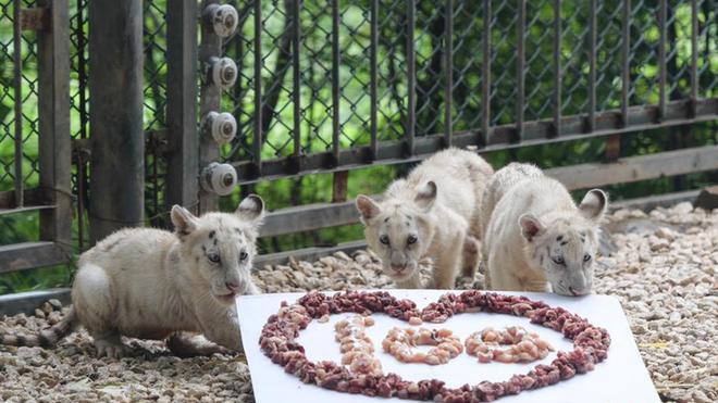 濟南野生動物世界雪虎五胞胎慶百日