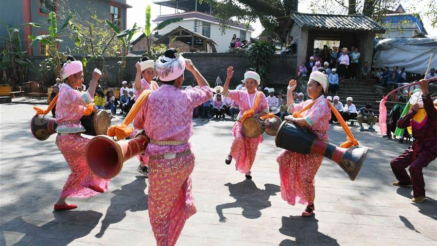 年末歲初,云南省普洱市景谷傣族彝族自治縣家家戶戶都會在經(jīng)濟(jì)條件允許的情況下舉行賧白象活動,邀請親朋好友歡聚在一起,跳象腳鼓舞,歡慶、祈福。