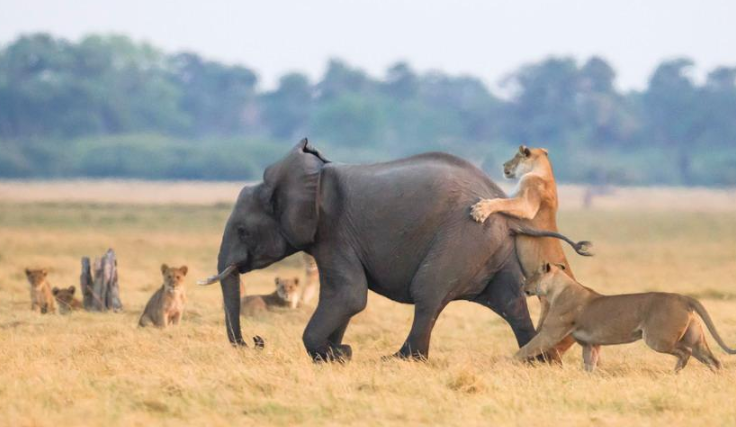 英國(guó)攝影師詹姆斯(James Gifford)在博茨瓦納喬貝國(guó)家公園拍到一群獅子獵食大象的精彩畫面。