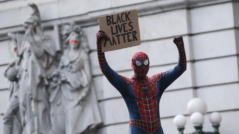 7月1日,香港市民在太平山頂廣場(chǎng)唱國(guó)歌。