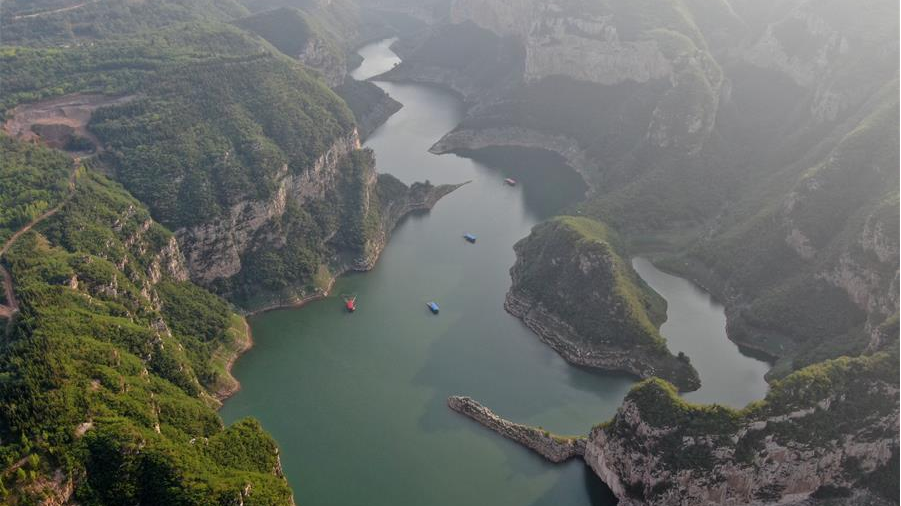 黃河小浪底水利樞紐工程位于黃河中下游。夏日里,山水交融,景觀壯美。