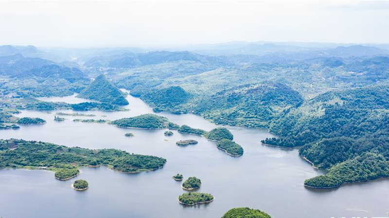 初夏時節(jié),貴州省貴陽市阿哈湖國家濕地公園草木蒼翠,風景如畫,吸引人們前來休閑游玩。