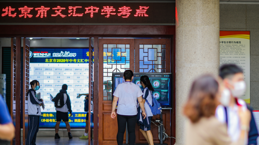 2020年7月17日,2020北京中考開始,在文匯中學(xué)考點學(xué)生們有序進入考點。