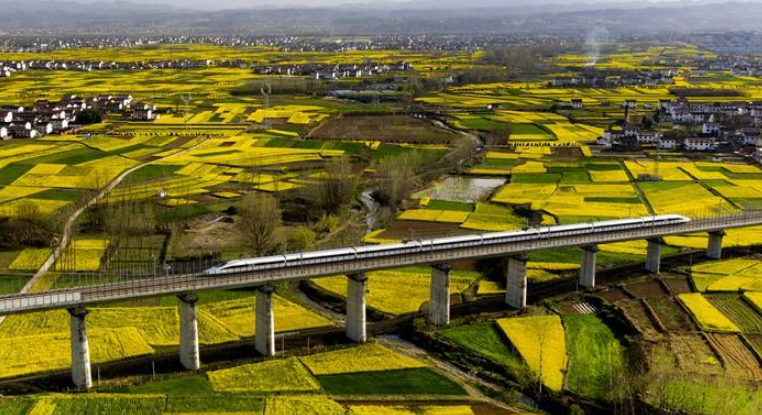 近日,秦嶺南麓的陜西省漢中市洋縣14萬(wàn)畝油菜花競(jìng)相開(kāi)放,美景如畫(huà)。