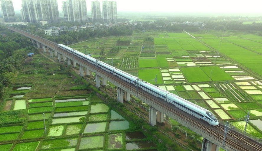 2020年3月17日,海南環(huán)島鐵路一列動(dòng)車從春光明媚的瓊海城區(qū)經(jīng)過(guò)。