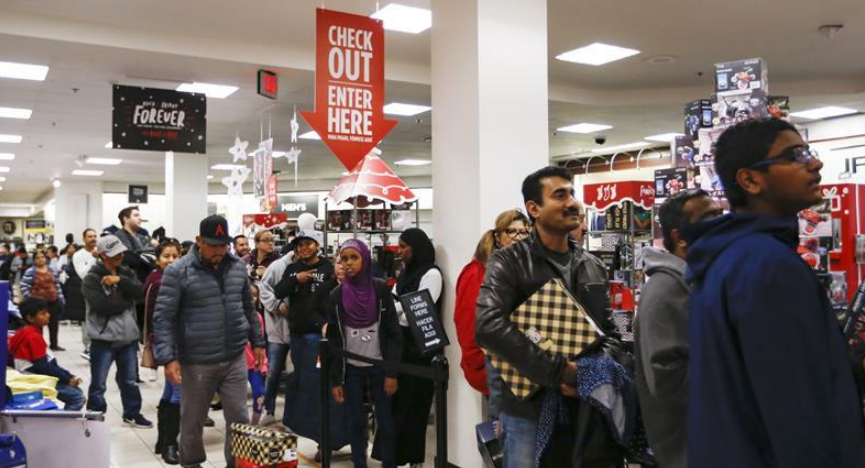 當(dāng)日,美國(guó)眾多商家競(jìng)相開展“黑色星期五”促銷活動(dòng),吸引大批顧客搶購(gòu)。?
