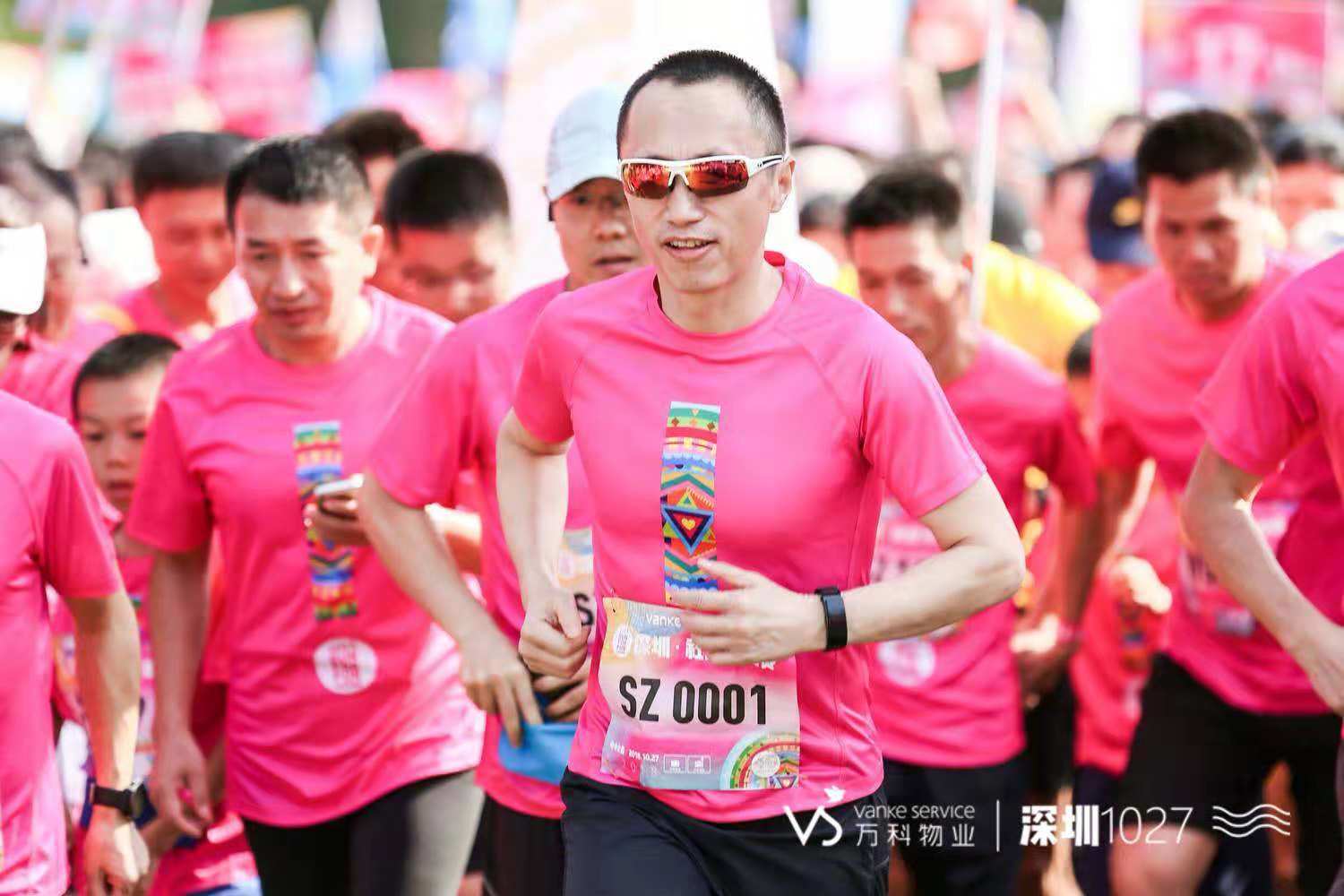 九點(diǎn)三十分,深圳市住房和建設(shè)局物業(yè)監(jiān)管處副處長(zhǎng)瞿能友、市物業(yè)管理行業(yè)協(xié)會(huì)會(huì)長(zhǎng)曹陽(yáng)、萬(wàn)科企業(yè)股份有限公司高級(jí)副總裁兼萬(wàn)科物業(yè)CEO朱保全、物業(yè)行業(yè)資深專(zhuān)家雷昭新、深圳萬(wàn)科金域華府業(yè)主蔣文錦、金色領(lǐng)域業(yè)主余志斌共同打響發(fā)令槍?zhuān)瑓①愓邆儧_出龍門(mén),開(kāi)啟了五公里的愛(ài)心奔跑旅程。