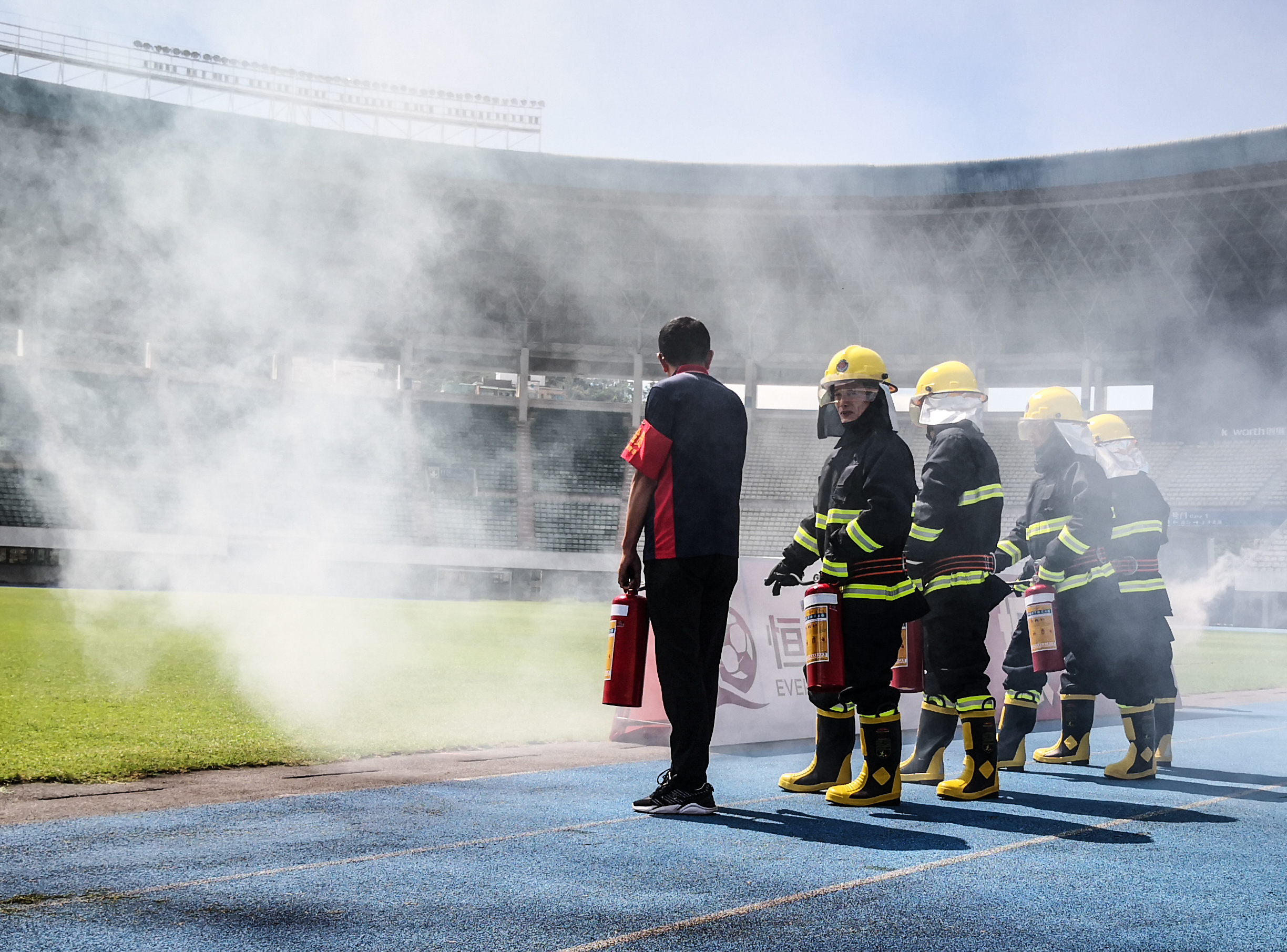為確保本次演練到位,體育中心特別邀請(qǐng)了羅湖中學(xué)初中部的同學(xué)參加演練,讓孩子們有一次親身感受火災(zāi)疏散的經(jīng)歷,了解火災(zāi)疏散的流程,提升同學(xué)們的自救意識(shí)和技能。15:00,體育中心體育場(chǎng),隨著一聲警報(bào)聲的響起各工作組在體育場(chǎng)播音系統(tǒng)指揮下第一時(shí)間到達(dá)指定位置,搶險(xiǎn)求援組迅速開展消防滅火,警戒疏散組指揮在場(chǎng)地和看臺(tái)的學(xué)生快速、有序從就近路線撤離至廣場(chǎng)安全區(qū)域,并尋找是否有遺漏的學(xué)生。師生到達(dá)廣場(chǎng)安全區(qū)域,各班班主任清點(diǎn)學(xué)生人數(shù),確保學(xué)生無一人滯留,并層層上報(bào)。不到9分鐘時(shí)間,600多名羅湖中學(xué)初中部師生全部安全撤離。整個(gè)演習(xí)過程流程清晰,信息傳達(dá)準(zhǔn)確、及時(shí),疏散指揮反應(yīng)快速,未發(fā)生學(xué)生擁擠、無序的安全隱患,演習(xí)效果理想。