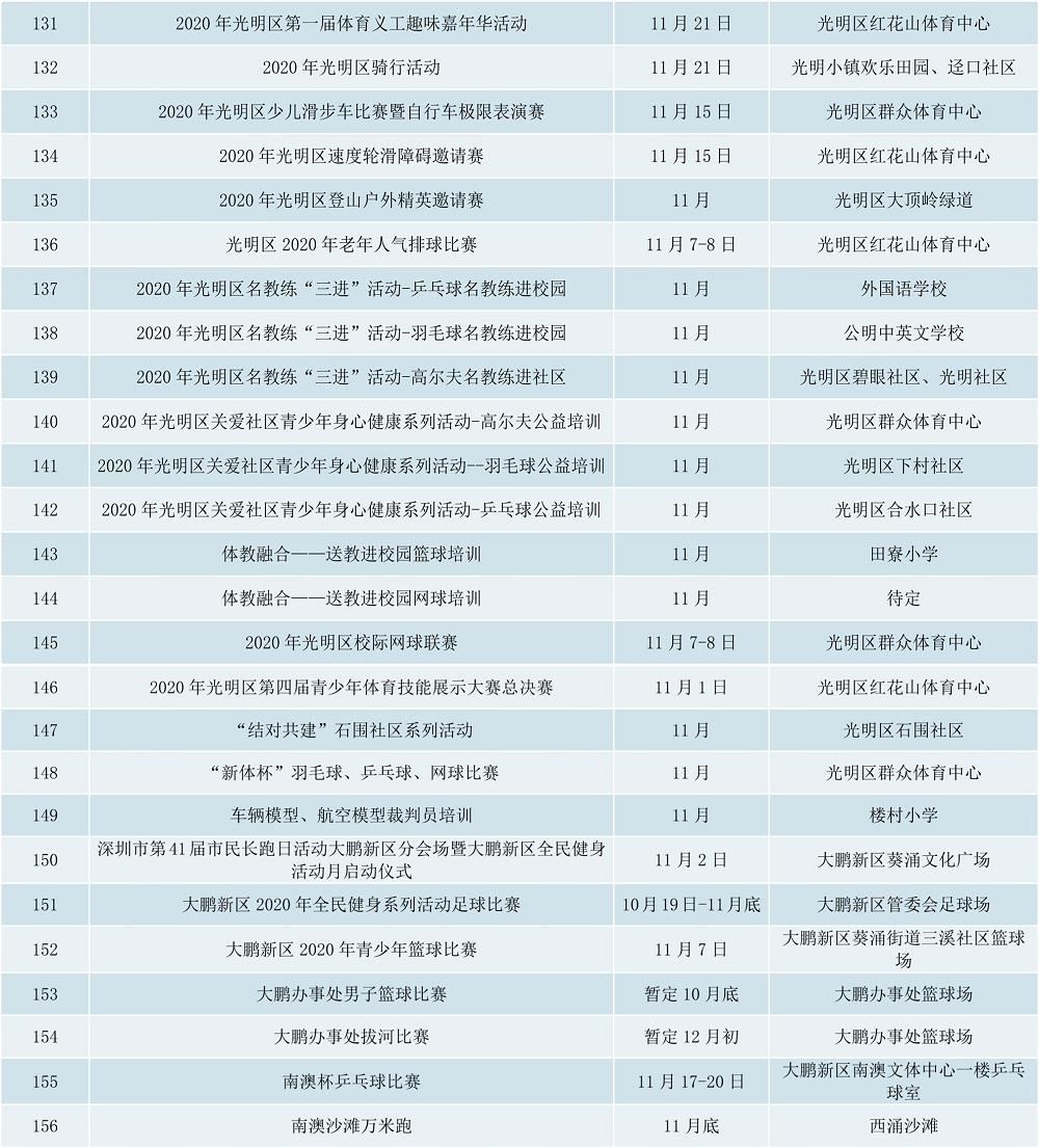 2020深圳全民健身活動月社會體育指導員服務點表: