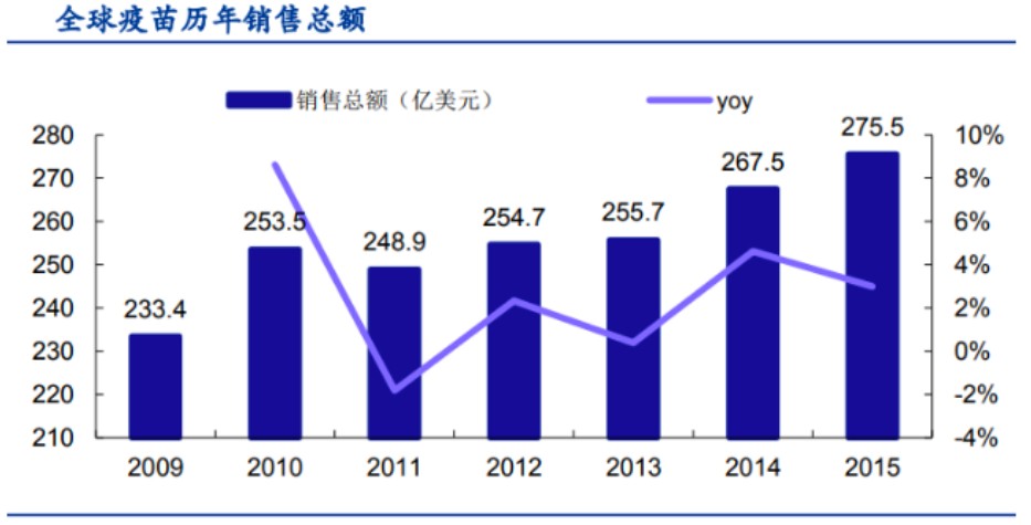 我國有45家疫苗生產(chǎn)企業(yè),可生產(chǎn)63種疫苗,預防34種傳染病,是世界上為數(shù)不多的能夠依靠自身能力解決全部計劃免疫疫苗的國家之一。從2005年到2015年的十年間,我國疫苗產(chǎn)業(yè)市場規(guī)模從65億元增至245億元,年均復合增長率達14%。