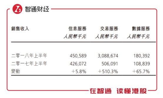 板塊方面,交易板塊是此次營收貢獻的主力軍,共為總營收貢獻81.5%的銷售收入。上半年,交易服務板塊營收入約30.9億人民幣,較去年5.06億增長約510%。信息服務板塊營收約人民幣4.5億,同比增長5.8%。數(shù)據(jù)服務板塊則貢獻營業(yè)收入約1.81億元人民幣,較去年1.09億增長66%。利潤率方面,信息服務增長7.12%,交易服務增長188.5%,數(shù)據(jù)服務增長23.45%。