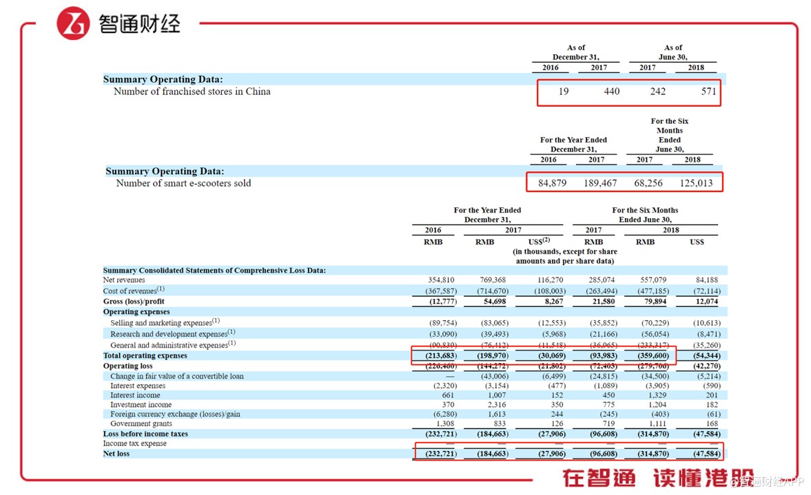 但是電車銷售量卻沒有呈同速度上升,數(shù)據(jù)顯示銷量同比約為2倍的速度增長。而隨之帶來的確實(shí)更高的運(yùn)營費(fèi)用,2018年上半年運(yùn)營支出為3.6億人民幣,為去年同期0.94億的3.8倍,也因此凈虧損由去年上半年的0.97億增加到今年同期的3.1億人民幣。