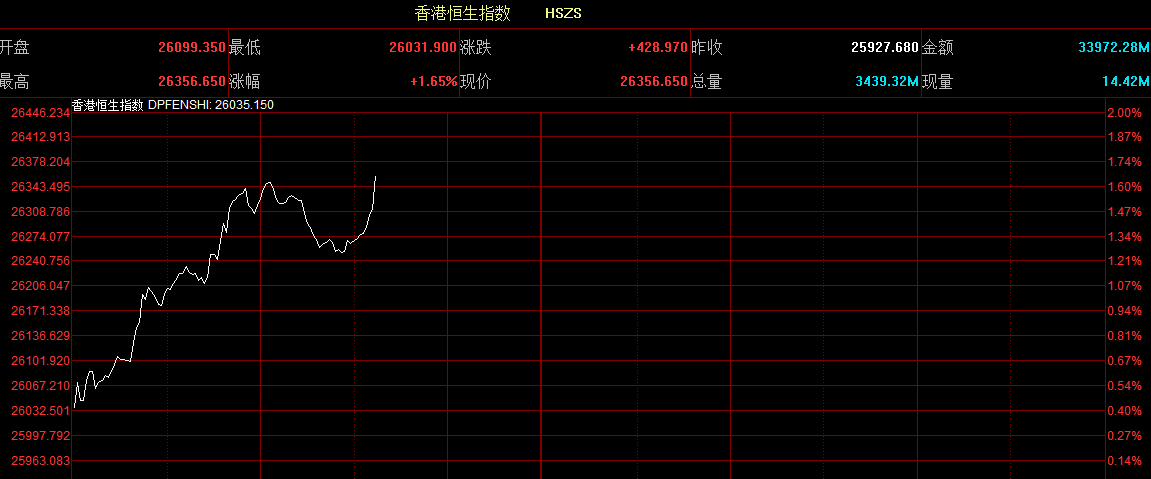 智通財經APP獲悉,恒生指數開盤漲0.66%,報26099.35點。國企指數漲0.63%,報10453.82點。紅籌指數漲0.48%,報4281.96點。大市盤前成交11.68億港元。