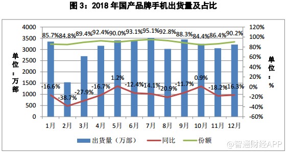 二、12月國產(chǎn)品牌手機(jī)出貨量同比降9.6%