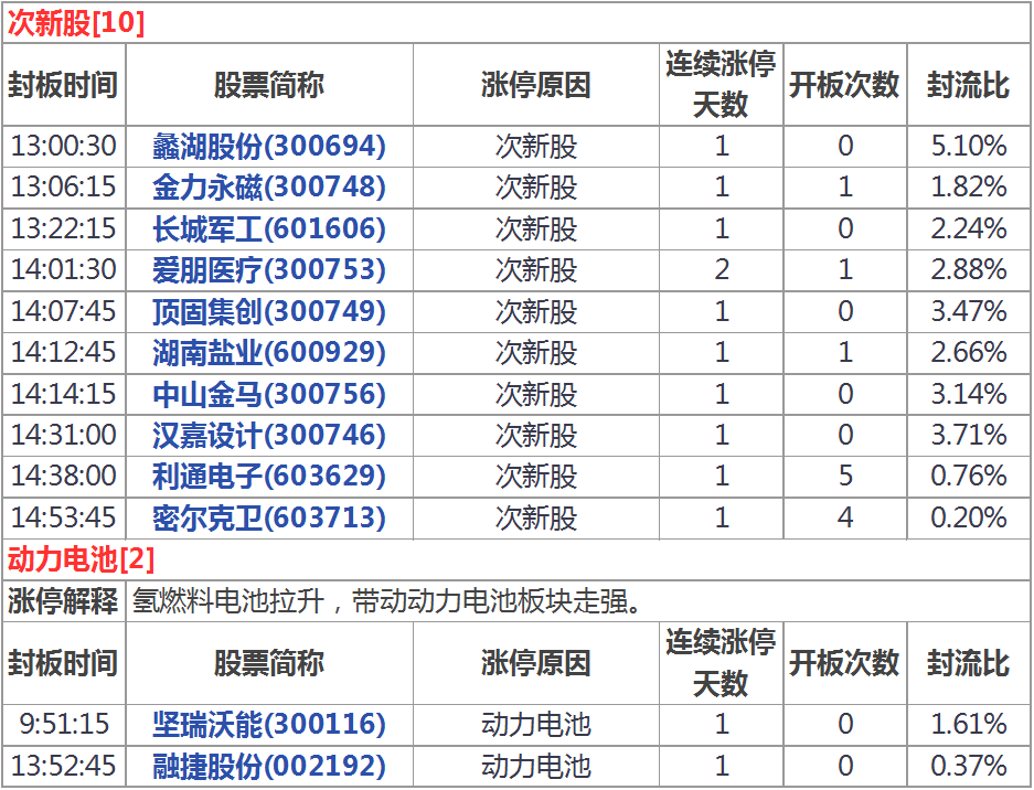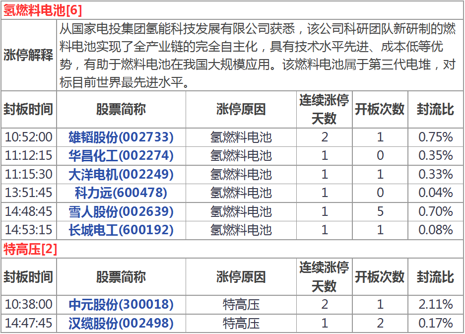 漲停分析:氫燃料電池走強(qiáng)次新股多股漲停(1月11日)