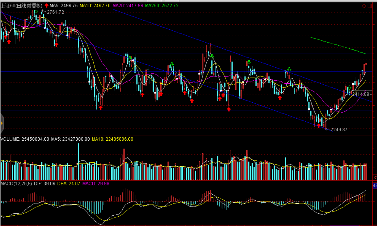 技術(shù)面:延續(xù)震蕩上行趨勢,上證50短期2570點(diǎn)一線、滬綜指2700點(diǎn)、1350點(diǎn)一線震蕩或?qū)⒓觿 ?/p>