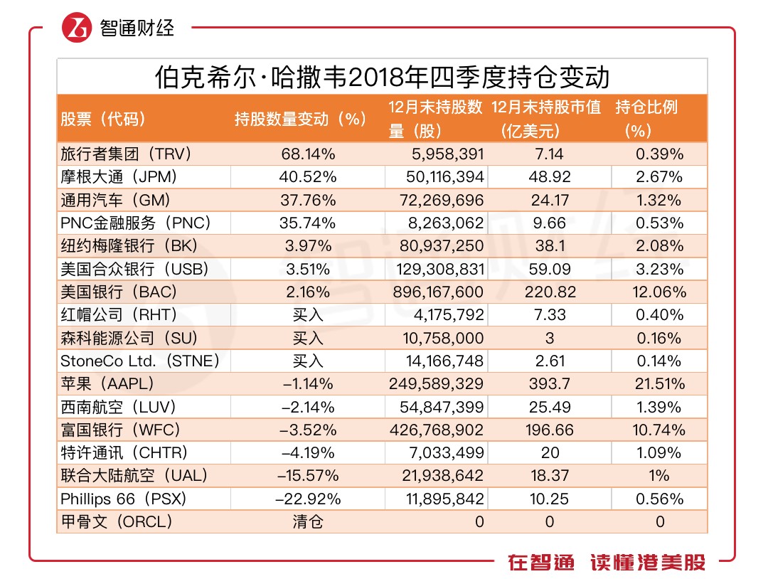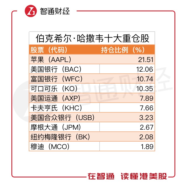 截至12月末,伯克希爾的十大重倉(cāng)股分別為蘋(píng)果、美國(guó)銀行、富國(guó)銀行、可口可樂(lè)、美國(guó)運(yùn)通、卡夫亨氏、美國(guó)合眾銀行、摩根大通、紐約梅隆銀行及穆迪。
