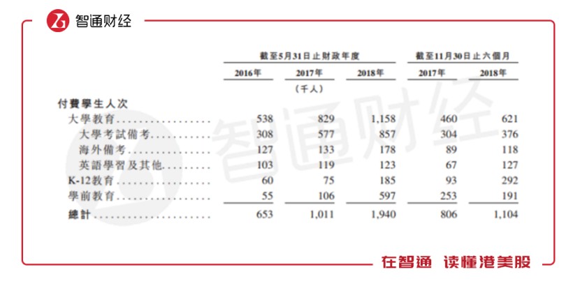 這主要由于學(xué)生付費(fèi)人次的大幅增加,學(xué)生報(bào)名流水約有81.6%及14.8%來自大學(xué)分部及K12分部。