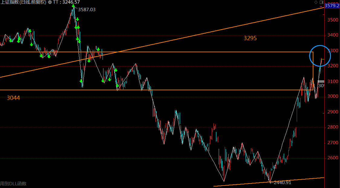 日線(xiàn)看,上證指數(shù)這里接近大級(jí)別中樞的上軌3295點(diǎn),這里短線(xiàn)大概率會(huì)震蕩回落,一蹴而就的可能性不大。