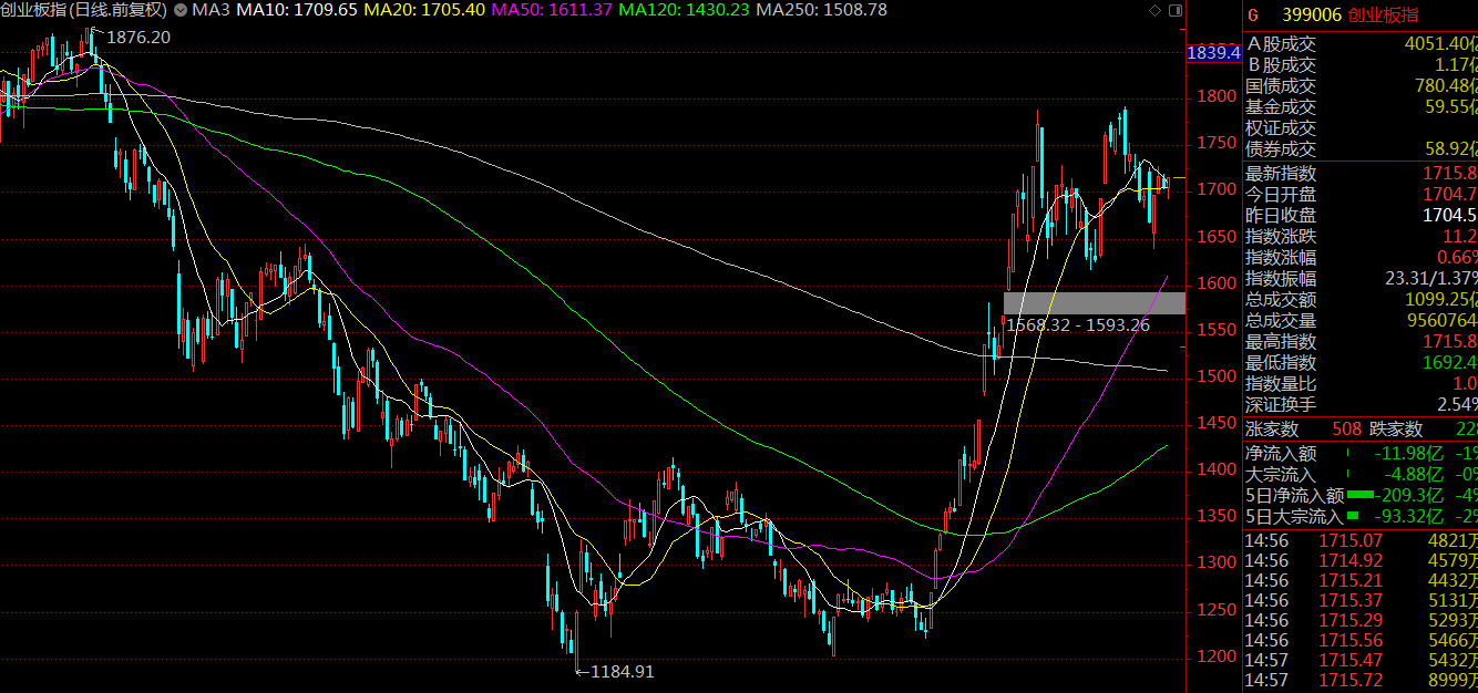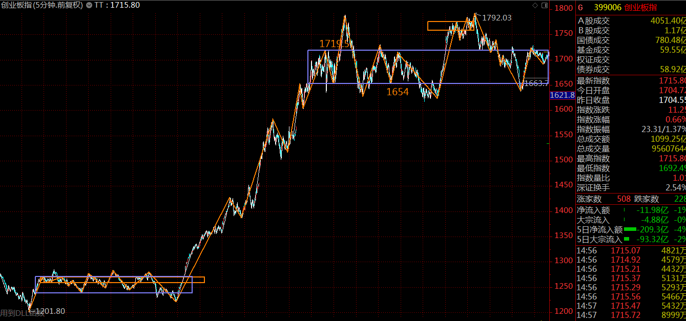 創(chuàng)業(yè)板這里走弱了已經(jīng),上周一、周二的調(diào)整打到了中樞下軌,這是一次警告,上拉后始終不能站上中樞上軌,是為弱勢(shì),本周關(guān)注1654點(diǎn)的支撐,謹(jǐn)防第三類(lèi)賣(mài)點(diǎn)的出現(xiàn)。