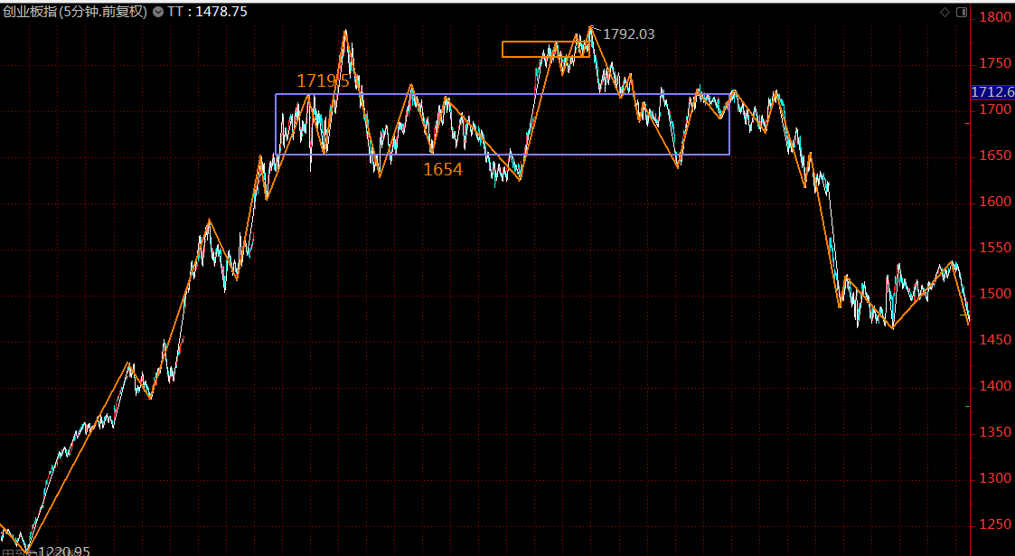 同級別分解后,創(chuàng)業(yè)板指數(shù)這里也進入了4月8日開始的五分鐘級別下跌趨勢最后一段,周一再次探底后,可全面轉(zhuǎn)入進攻模式。